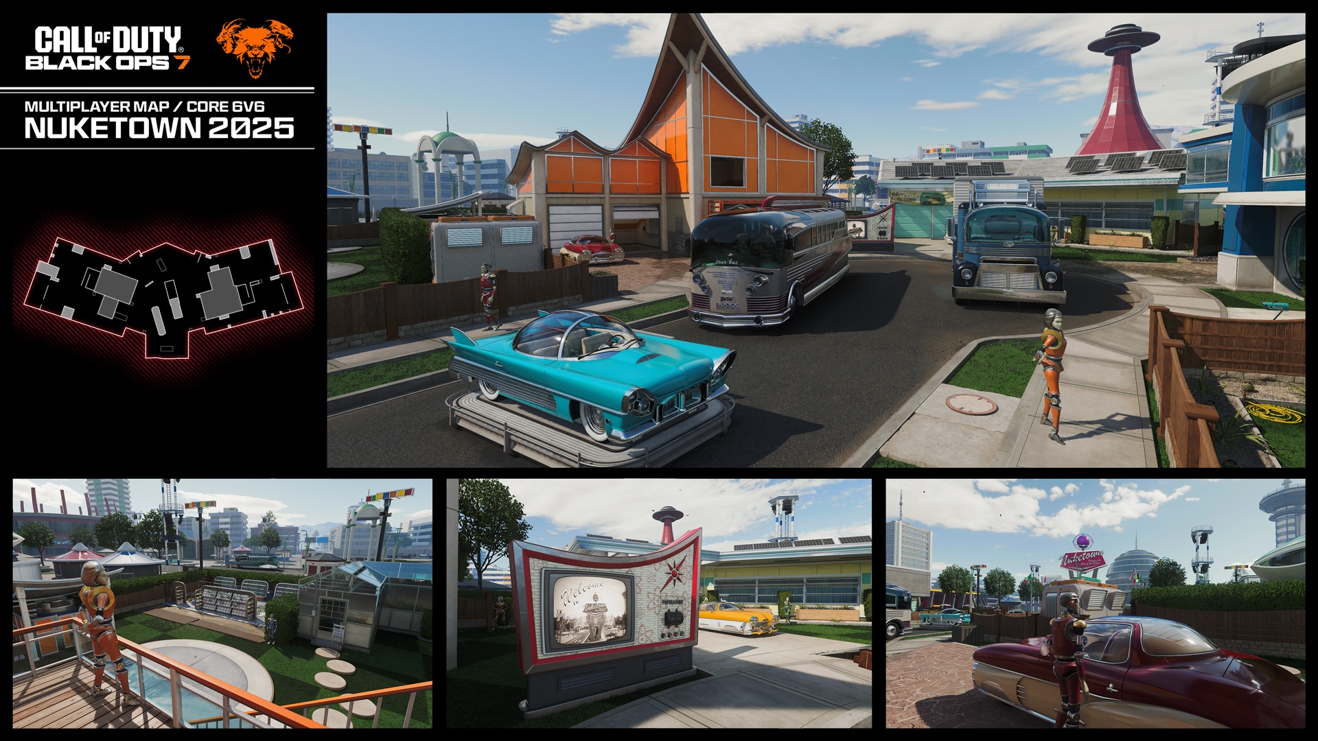 Sorti dans le cadre de la pré-saison peu après le lancement, Nuketown 2025 est de retour dans une version remasterisée aux visuels époustouflants, avec un rythme de combat retravaillé et une action explosive qui redéfinit cette carte emblématique. Plongez dans cette vision rétro-futuriste de la banlieue américaine et commencez le carnage.