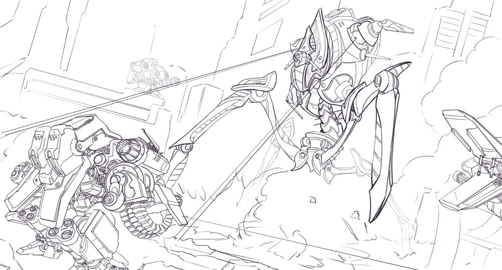 피터님은 판다리아 이전까지의 월드 오브 워크래프트와 스타크래프트의 전반적인 컨셉 아트를 작업하셨다고 하는데요. 먼저 행사에 소개되었던 작품이 완성되는 과정을 단계별로 간단히 되짚어 볼까요?
